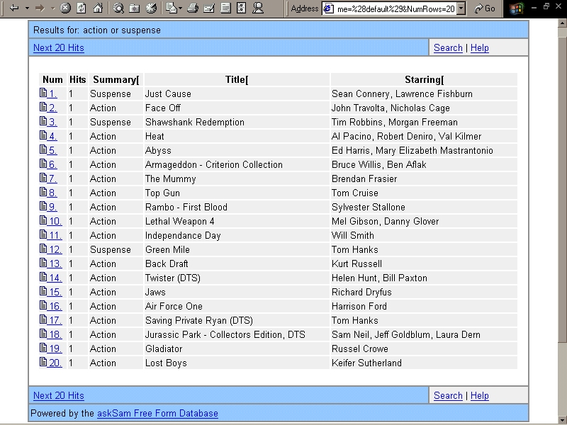 4. Saves information from Web-based forms directly into an askSam database thus making the information immediately searchable.