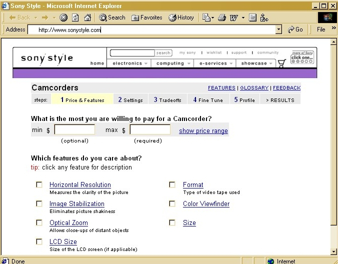 Customers, such as Sony Electronics e-Solutions Company LLC, incorporate the technology in their ecommerce web site. "Technology from Active helps us convert online shoppers into buyers," said Brian Siegel, manager of new business development at Sony Electronics e-Solutions Company, which manages the more than 750 consumer electronics products and services on the SonyStyle.com web site. "Active's system, like a knowledgeable sales person, helps customers quickly determine which product best meets their individual needs."Active Sales Assistant's easy-to-use, interactive question-and-answer format hones in on consumer preferences, generating intelligent, personalized, value-based recommendations (see screenshot). Each retailer's latest pricing and product availability information is updated automatically via an XML feed. This service helps online shoppers make more timely, well-informed, and satisfying purchase decisions by recommending and comparing the products that best fit their personal priorities in terms of price and features. It also aggregates information about consumer preferences that can help retailers and manufacturers better understand their customers.